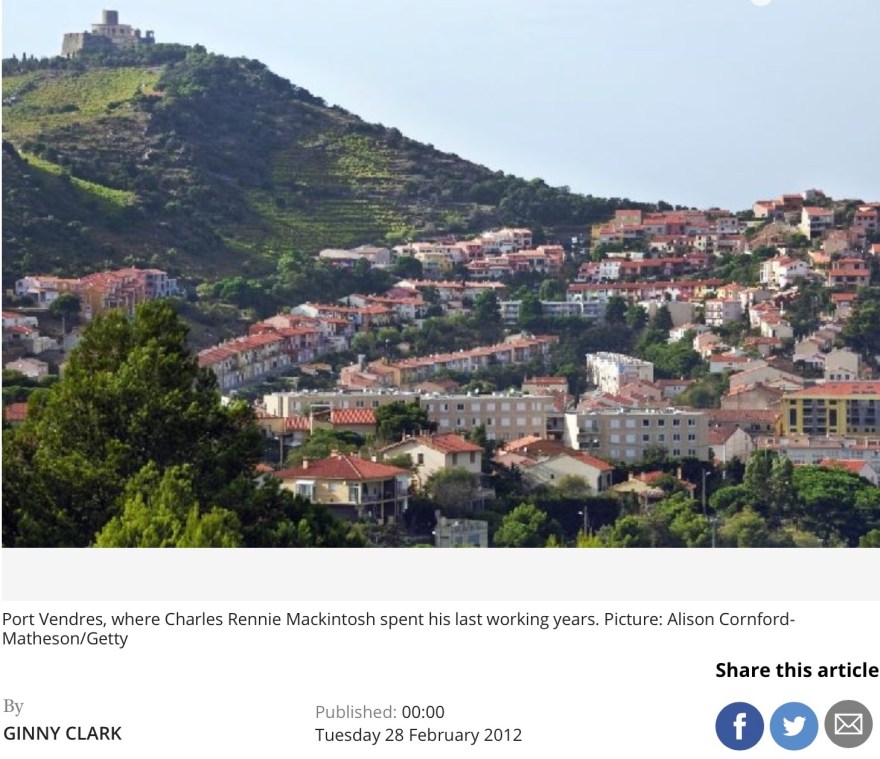 Port Vendres, just a couple of miles down the coast, is smaller, and less hectic. However, it does have its own very special artistic legacy, and this is something that should have particular interest for visiting Scots, as it is the town where Charles Rennie Mackintosh, archiect, designer, and painter, spent his final working years.